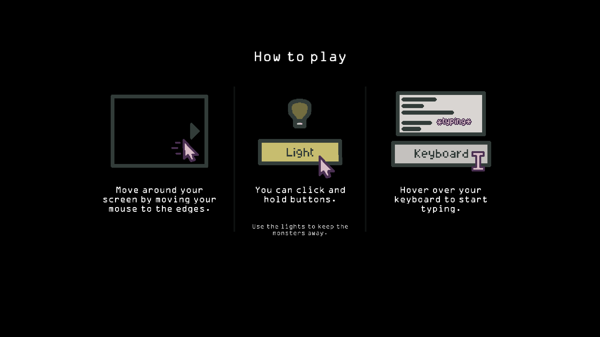 - You can click and hold buttons with your mouse. Use the lights to keep the monsters away.